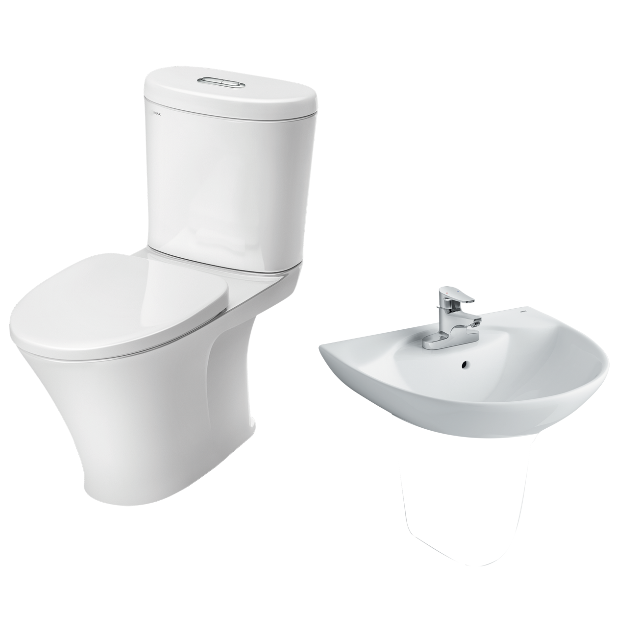 - Bàn cầu 2 khối xả nhấn nắp êm đến từ thương hiệu thiết bị vệ sinh INAX