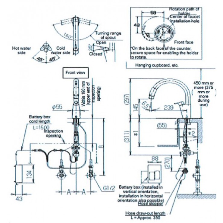 Bản vẽ kỹ thuật vòi rửa chén Inax SFNB454SXJ