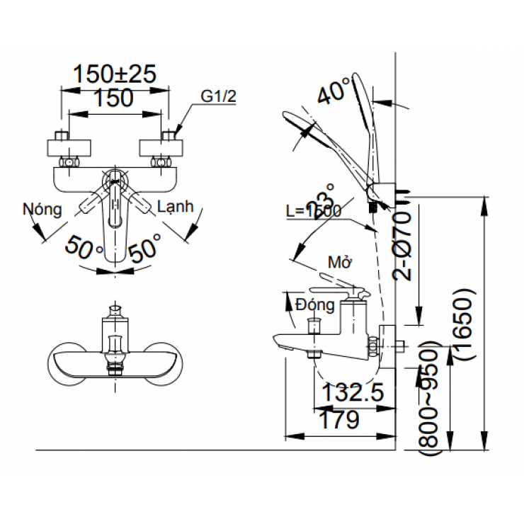 – Áp lực nước : 0.05 MPa ~ 0.75 MPa