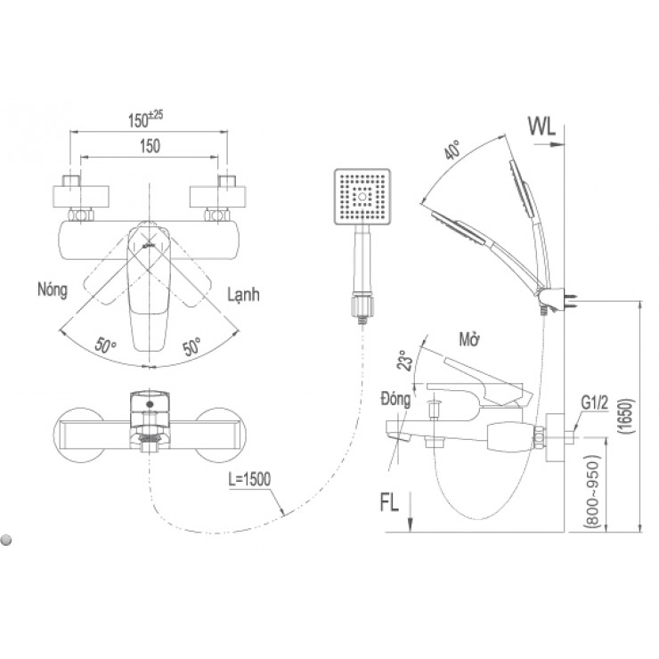 – Áp lực nước : 0.05 MPa ~ 0.75 MPa